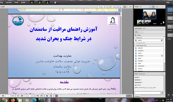 برگزاری وبینار "سلامت سالمندان در شرایط جنگ و بحران شدید" در سطح معاونت بهداشت