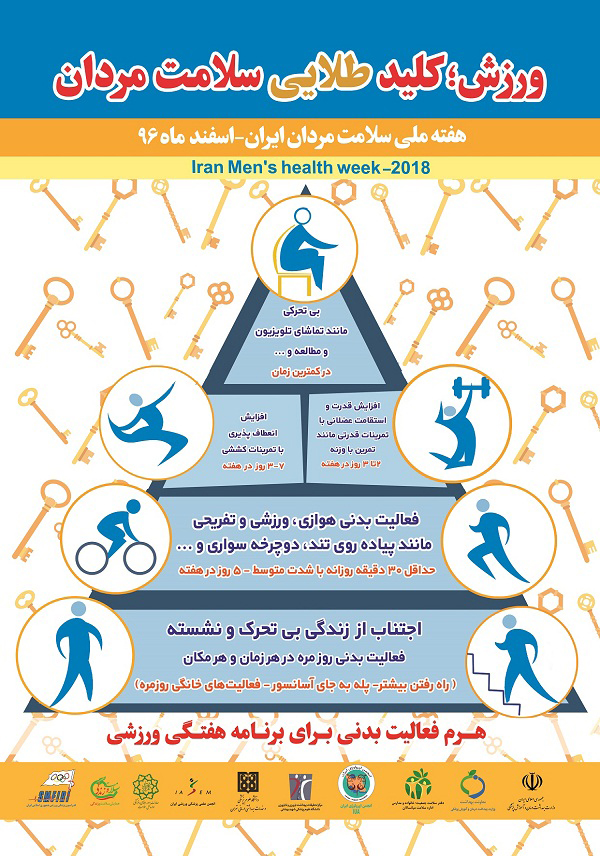 همه ساله در هفته اول اسفندماه پویش "سلامت مردان ایرانی"، با هدف اطلاع رسانی و حساس سازی گروههای مختلف جامعه در خصوص اولویتهای سلامت مردان کشور، برگزار می گردد. در سال جاری،  با توجه به اهمیت و شیوع کم تحرکی در جامعه و تاثیر آن بر کلیه ابعاد سلامت آنان، شعار "ورزش؛ کلید طلایی سلامت مردان" جهت این هفته، انتخاب و موضوع فعالیت بدنی به عنوان محور اصلی پویش تعیین گردیده است.